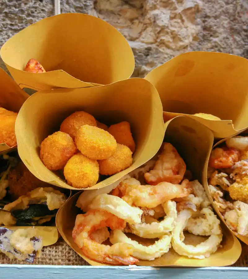 Per un pranzo tradizionale, lasciatevi tentare dai piatti di mare dei ristorantini di Mergellina o da un piatto di pasta e patate con la provola in una trattoria dei Quartieri Spagnoli. E se volete sentirvi veri napoletani, fermatevi per uno street food tour tra cuoppi di frittura, taralli caldi e pizza a portafoglio: un’esperienza che unisce gusto e allegria.